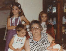 By the fall of 1977 Mother was sixty-six years old and had been involved with children as a big sister, as a mother, as a Sunday school teacher, as a grandmother, and as a daycare provider for most of her life. It was time to retire. She moved to an apartment in Craig Court, where she made sure that there were always flowers growing in the summer and that the birds were fed. But she still Mother with my four oldest children, June 1983. saw plenty of children--her grandchildren, eventually seven in number, who loved to spend the night with First Presbyterian Church [now Historic Franklin Presbyterian Church]. She pursued her hobbies of needlework and doll collecting and was featured in a couple of newspaper features about them. Maintaining a keen interest in the preservation of the historic Franklin she loved, she continued to take walks in downtown Franklin till she was well into her eighties. She was not at all happy with the changes she saw. I can still hear her complaining, "Who ever heard of a round square?"