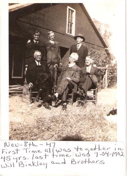 The brothers are not identified in this photograph. His brothers were Tazwell M. Binkley, James D. Binkley, Allen Franklin Binkley, Louis Newton Binkley, and George Maxey Binkley.