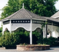 Judge Eggleston's house as it looks today. The Tohrners lived across the street on the other corner. The Tohrners had three daughters, Hazel, Annie, and Stella and a son, Martin. They ran a store on Main Street. In those days it was called a dry goods store; they carried clothes, shoes, etc. The Lunn girls, the Truett girls, and Hazel Tohrner put on a show in the back yard at the Eggleston home. They had dresses made of crepe paper. The Lunns and the Truetts sang, and Hazel Tohrner danced. Admission was a penny. I thought it was just wonderful. I was so fascinated with the gazebo. The gazebo is still there today. The gazebo today. Mrs. Gant lived in the third house from the corner going on the right side toward Bridge Street, the second house was Agnes Bennett's, and the house on the corner was the Rose place. I'm not sure who it belonged to. Lottie and Louise's grandmother Mrs. Ormes was married in that house. (The children and I lived in the Rose house when we came back to Franklin from Chicago in 1960.) The house behind the old Interurban station the Green Williams family lived in. Their daughter Jennie married Dr. J. O. Walker. The brick building across from the Interurban station was called West Point. The house back of it Dr. Howlett lived in and had his office. He had two daughters Maxie and Virginia. Dr. Harlin Perkins Cochrane also lived on that street. All those houses are still there but the Howlett house. |