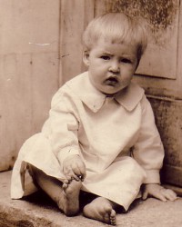 After training at Camp Shelby, Mississippi, and in Yuma, Arizona, he went overseas in December 1943, serving in North Africa and Italy. In his letters home, he asked about those at home, sent his love, bemoaned the slowness of mail, and sometimes made requests. In February 1944, he wrote to his mother, "Honey, could you send me some kind of chocolate candy, any kind, homemade or bought?" By April 1944 he was in Minturno, Italy. On April 29, while he and his tent mate were making repairs to their camp, he was killed by a German shell. Back in Franklin, nearly three weeks later, an insensitive delivery man rang the doorbell and thrust a telegram into the hands of my grandmother, saying "Here. Your son is dead."