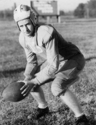Playing football, about 1941, and with his four brothers. He also had three older sisters.