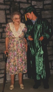 One of my favorite pictures. Mother shares a joke with my son before his high-school graduation in June 1998.